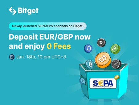Leading crypto exchange Bitget introduces new SEPA and FPS channels for users seeking to deposit EUR and GBP currencies. In addition, the new deposit rails come with 0% fees, making transacting cryptocurrencies more straightforward.