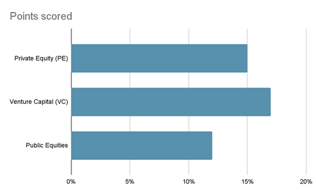 Comparison Chart of the Average Annual Return of Private Equity vs Venture Capital vs Public Market