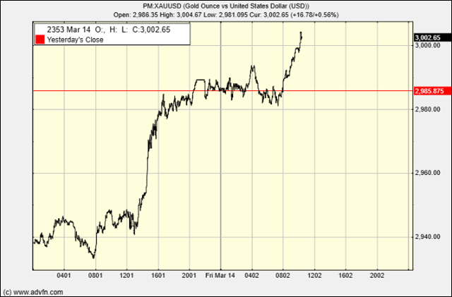 After hitting an all-time high yesterday, the gold price (PM:XAUUSD) has now broken above $3,000.