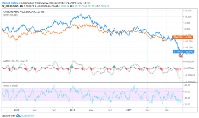 In the case of currencies, the won weakened after the Bank of Korea kept the policy rate unchanged. The Chilean peso set a record low. In the past two months, the dollar rose against the Chilean peso for almost 20%. The scariest thing is that the same story is happening to almost all the currencies of Latin America.