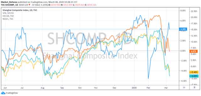 Nevertheless, investors are still remaining invested in stocks in case positive news emerged about the virus vaccine. Unfortunately, these times are the most difficult for analysts, as the market dictates the direction and doesn’t matter whether you will be right about the future or not. But here is an interesting data: the best performing index so far is China’s Shanghai Composite. Take into account that cases of coronavirus in Europe only start to appear as well as in the USA.