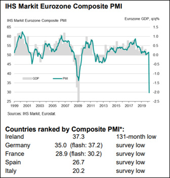 - Final Eurozone Composite Output Index: 29.7 (Flash: 31.4, February Final: 51.6)